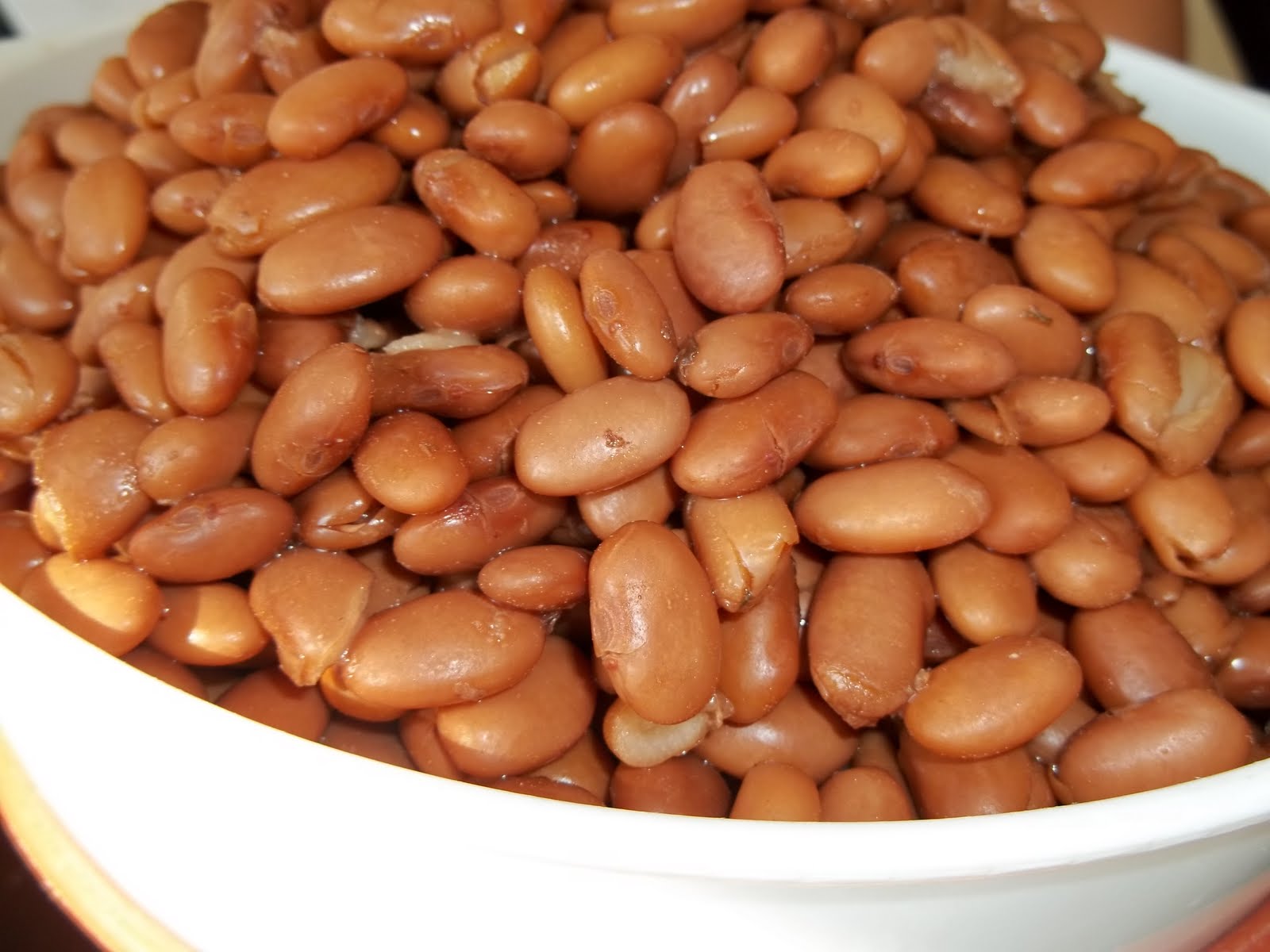 Drain beans. At this point, if you want to make refried beans...keep some of the juice. (Refried beans...mash some beans with a little reserved juice, and 1 tblsp more bouillon.)